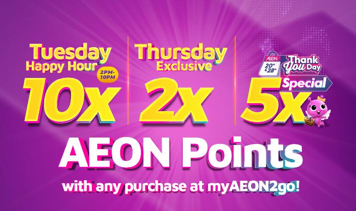 - Thursday Exclusive: Earn 2x AEON Points all day long.