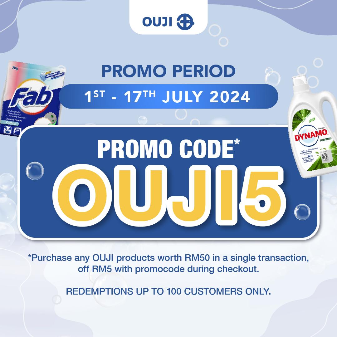 Purchase any OUJI products worth RM50 in a single transaction, get RM5 OFF with promocode OUJI5 during checkout. Redemptions up to 100 customers only.