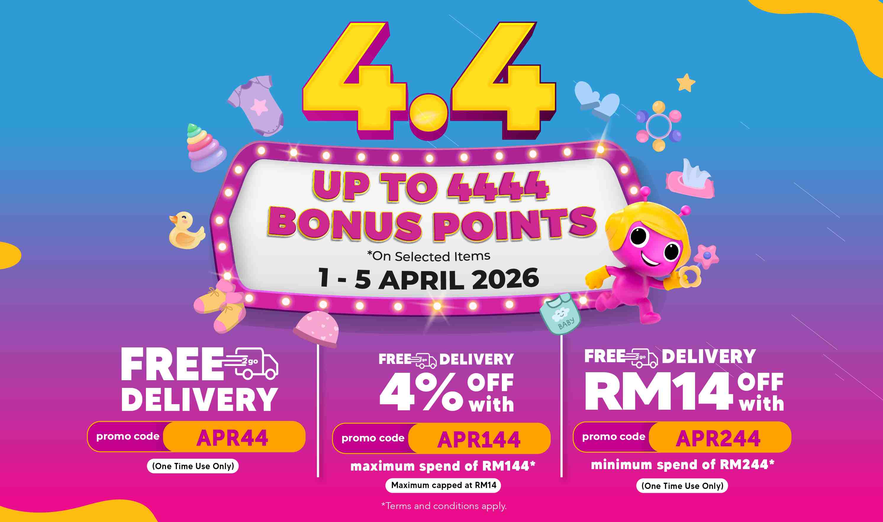 Code : APR44. Enjoy FREE DELIVERY with min. spend of RM44. Promo code for Express Delivery. 1x use per user