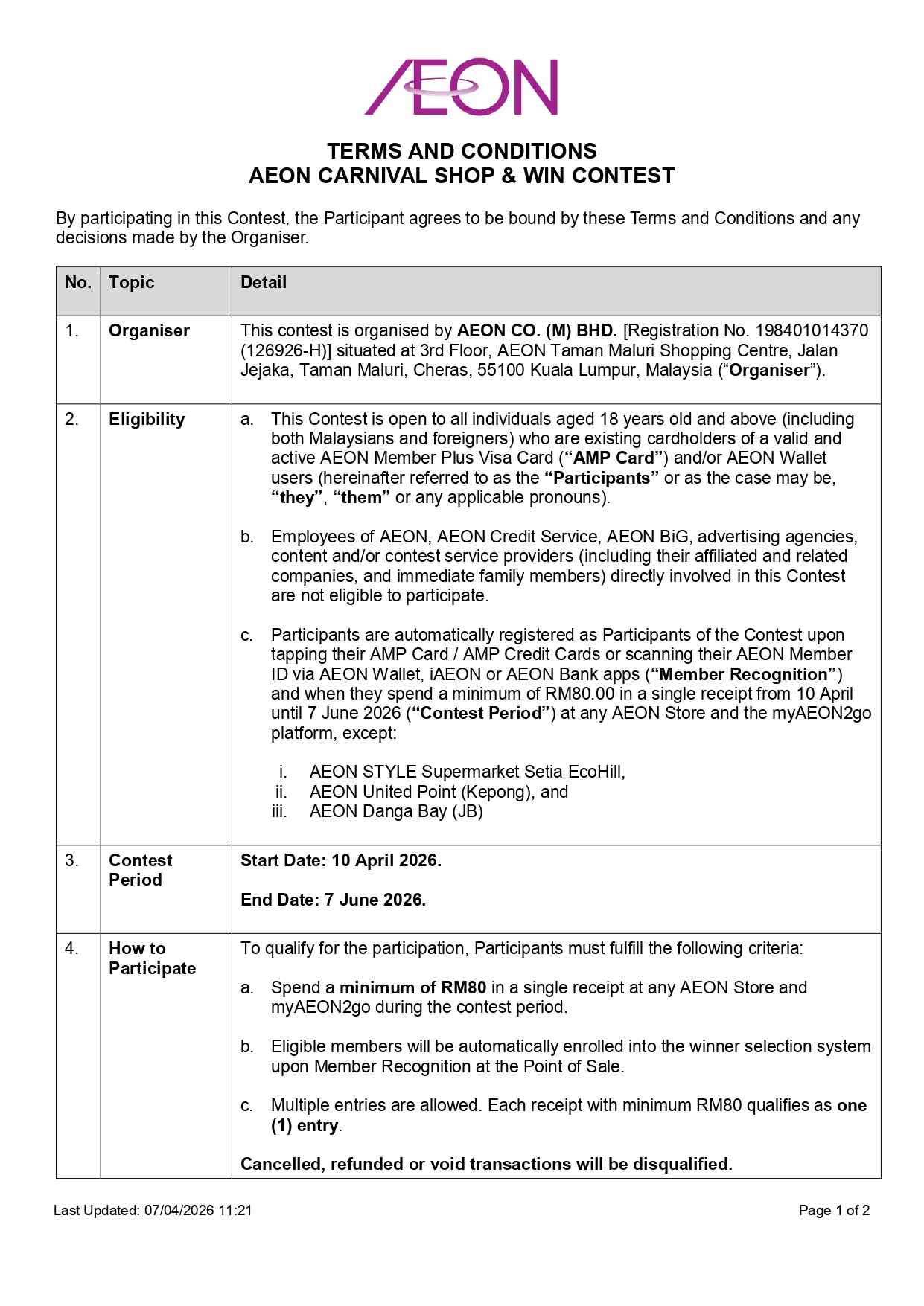 🎁 Enjoy 5x AEON Points for every RM1 spent! Shop now and stack up the reward.
