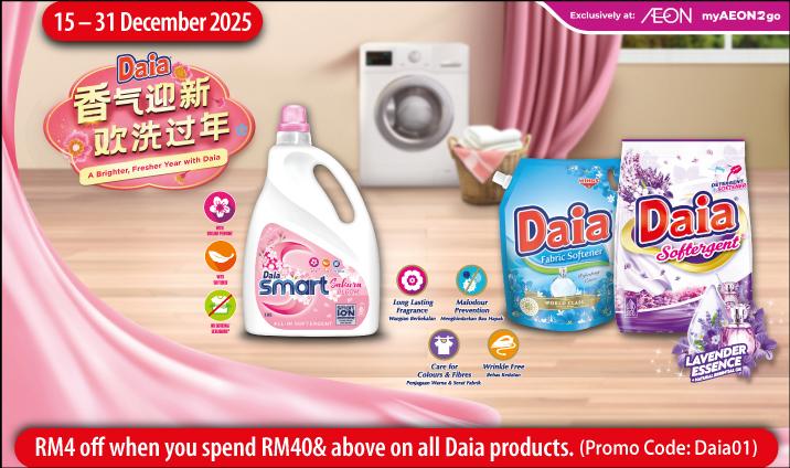 Purchase any DAIA product worth of RM40 in a single transaction and get RM4 OFF. Apply code : DAIA10