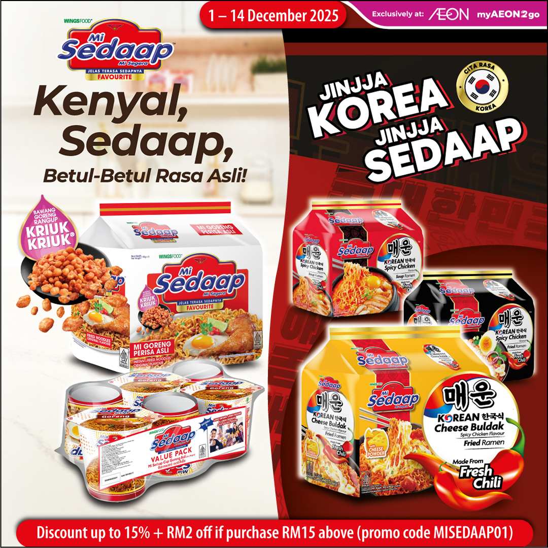Purchase Mi Sedaap products worth RM15 and enjoy RM2 OFF with code : MISEDAAP01