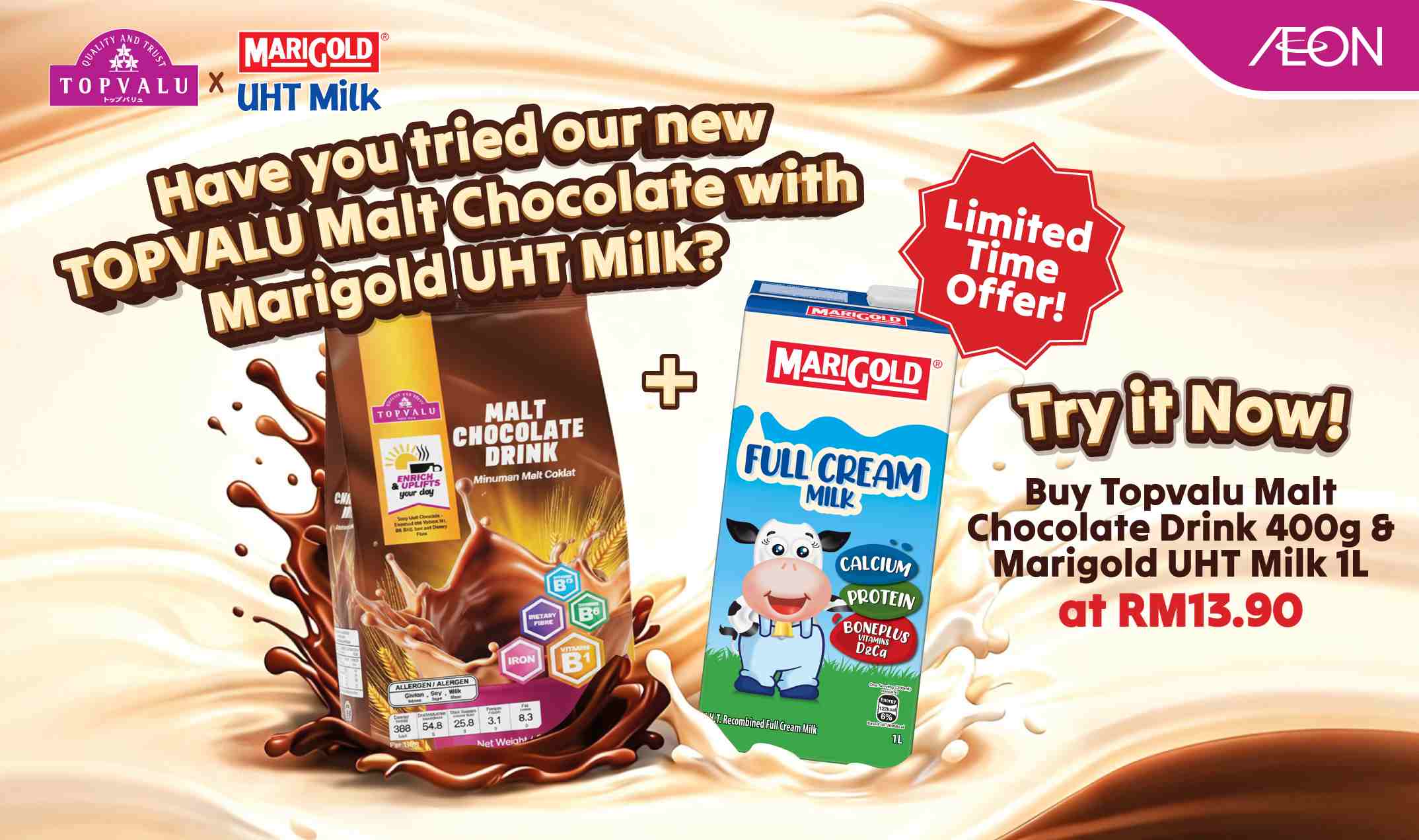 Topvalu Malt Chocolate Drink 400g & Marigold Uht Milk 1L